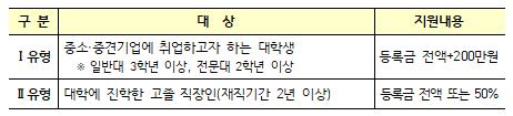 중소기업 취업·창업을 희망하는 대학생이면 등록금과 준비금 200만원 지원