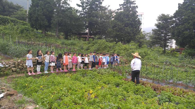 이 체험교실은 학년단위로 기간을 선정하여 학반별로 1시간씩 학교 뒤편에 있는 텃밭에서 황건수 교감선생님과 흙 체험활동 및 여름채소 이해활동을 한다.