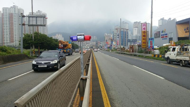 경남 도내에서 국도 및 시도 전구간에 미니 쏠라경광등을 설치한 경우는 거제경찰서가 처음이며, 최근 사망사고발생지점(양정동 양정회센터 앞) 및 사고다발지점(연초면 임전마을)등 4개소에 우선 설치하였고 6월이내 13개소에 대해서도 설치 완료 할 계획이다.
