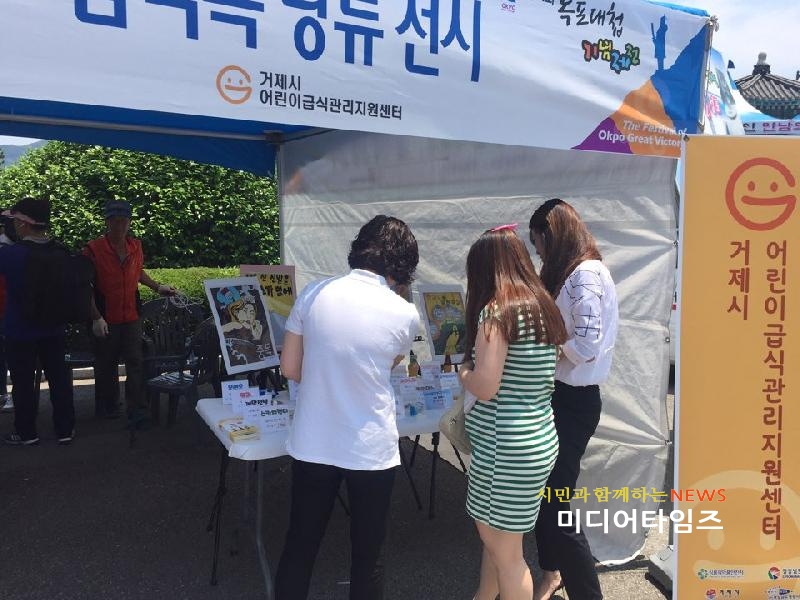 [미디어타임즈 = 최귀복 기자] 거제시 어린이급식관리지원센터(센터장 류선아)는 지난 17일, 거제시 옥포대첩기념공원에서 열린 옥포대첩 424주년 기념 ‘제54회 옥포대첩기념제전’ 행사에서 마련된 시민체험부스에서 당류 저감화 홍보물과 식생활 안전 포스터 수상 작품을 전시했다.
