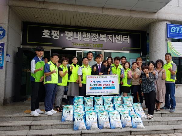 남양주시 ‘평내호평을 사랑하는 모임’ 회원들이 추석을 맞아 백미 200kg을 동부희망케어센터를 통해 호평동 지역사회 보장협의체에게 기탁했다고 지난 16일 밝혔다.