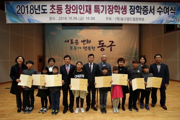 초등 창의인재 특기장학생 선발은 학생들의 끼와 재능을 계발하여 동구를 빛낼 창의인재로 지원·육성하고 관내 초등학교 동아리를 활성화하기 위해 추진하고 있으며, 이번 장학금 지급은 생활비 지원을 위해 동구 지역화폐인 동구사랑상품권으로 지급될 예정이다.