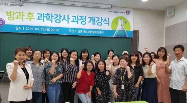 김포시는 지난 16일 교육강사 및 훈련생 등 20여 명이 참석한 가운데 김포여성새로일하기센터의 2019년 직업교육 훈련과정 중 하나인 방과후 과학강사 과정 개강식을 개최했다.
