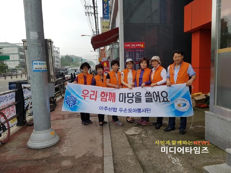 [미디어타임즈 = 최귀복 기자] 거제 아주신협 두손모아봉사단 단장 하태봉 외 19명은 “우리함께 마당을 쓸어요!”라는 슬로건 아래 지난 13일, 대우조선해양(주) 남문 일원에서 환경정화 봉사활동을 실시했다.