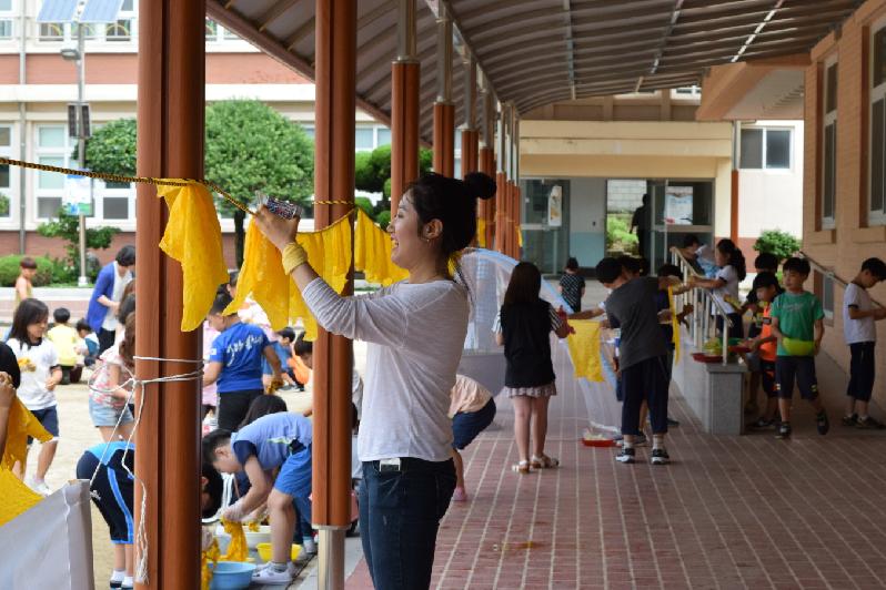 체험활동에 참여한 이소영(오비초5)은 “하얗던 손수건이 노랗게 물들여져서 내 기분도 같이 상큼해졌어요.”라고 싱긋 웃으며 말했다.