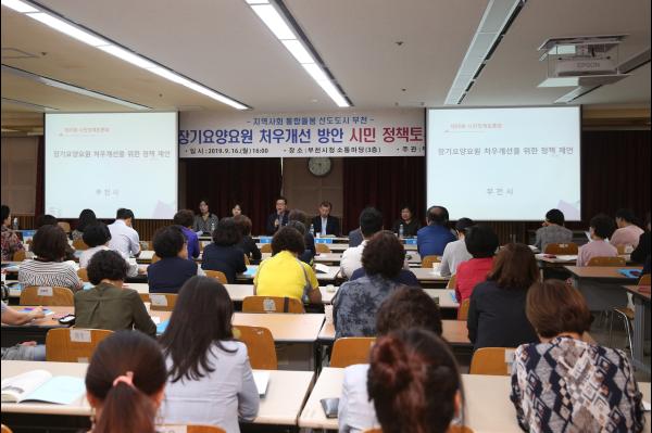 부천시는 지난 16일 시청 소통마당에서 시민, 전문가, 관계기관 종사자 등 150여 명이 참석한 가운데 장기요양요원 처우개선 방안 마련을 위한 시민정책토론회를 개최했다고 18일 밝혔다.