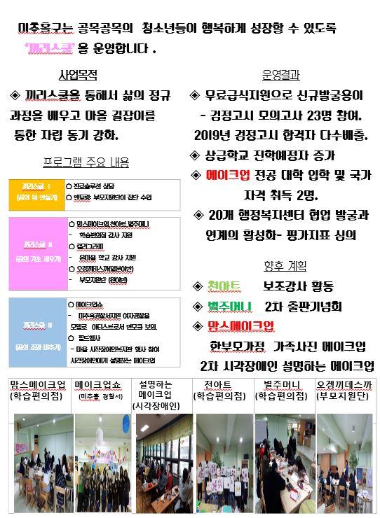 올해 상반기 끼리스쿨에서 90명이 초·중·고 검정고시 학력취득을 했고, 상급학교 진학과 함께 청소년 11명이 각종 자격증을 땄다.