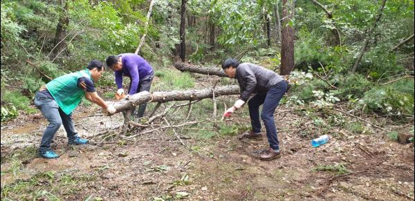 이에 대곶면 복지팀과 새마을지도자협의회는 긴급하게 전기톱 등의 장비를 갖추고 현장에 도착해 진입로를 막고 있는 두 그루의 나무를 제거했으며,