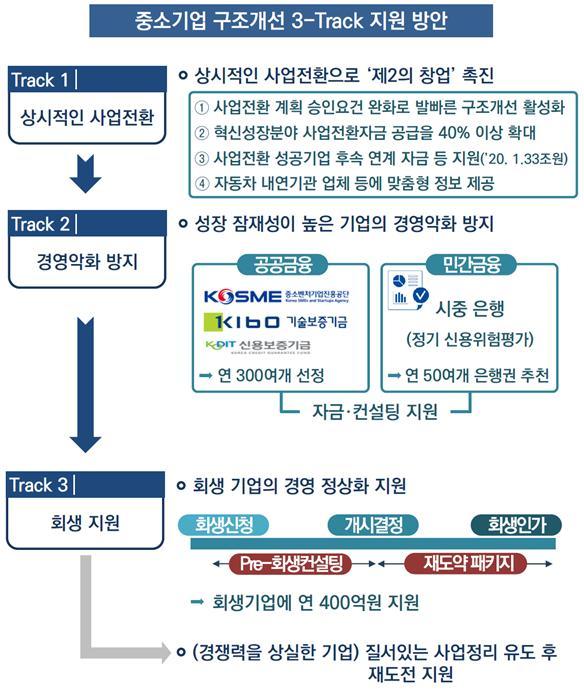 이를 위해 업종전환 등으로 중소기업의 근본적인 체질개선을 유도하고, 경영악화를 방지하기 위해 선제적 지원을 강화하며, 회생기업의 조기 정상화를 지원할 계획이다.