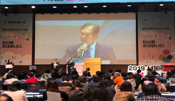 서울특별시의회 행정자치위원회 문영민위원장은 지난 17일 서울시청 다목적홀에서 개최된‘서울 안녕 페스티벌’에 참석하여 축사와 함께 자원봉사 캠프관계자 및 참여 봉사자들을 격려했다.