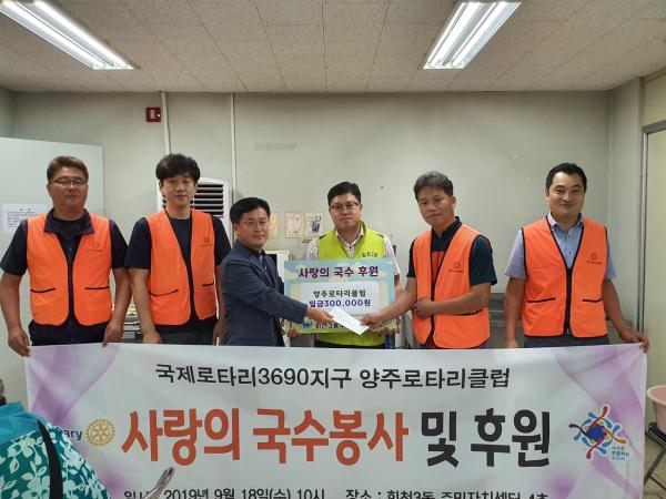 양주시 회천3동 행정복지센터는 18일 국제로타리3690지구 양주로타리클럽에서 회천3동의 나눔 주민자치위원회인 ‘사랑의 국수’를 위해 성금 30만원을 기탁했다고 밝혔다.