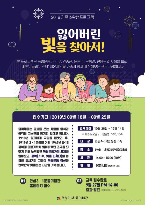 가족 소확행 프로그램은 가족과 함께 독립운동과 민족의 해방을 위해 헌신한 독립운동가의 서체를 따라 ‘대한’, ‘독립’, ‘만세’ 형태의 네온사인을 제작해보고, 100년 전 그들의 필적을 따라 독립 정신을 느껴보는 시간을 갖는다.