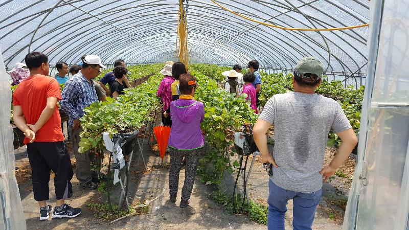 현장교육이 이뤄진 9개 농장은 광도, 도산면 지역에 딸기재배 하는 농업인 중에서 자가(제자리)육묘를 하시는 농업인으로서 기존에 딸기묘를 구입해서 재배하던 방식을 탈피하여 새롭게 육묘를 시도하는 곳이다.