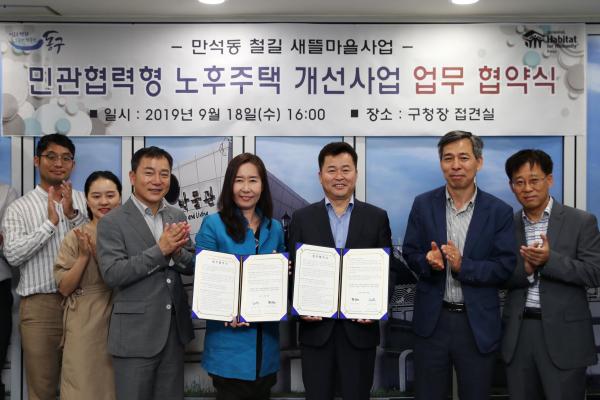 인천 동구와 한국해비타트가 2019년도 민관협력형 노후주택 개선사업을 위한 업무협약을 체결했다고 19일 밝혔다.