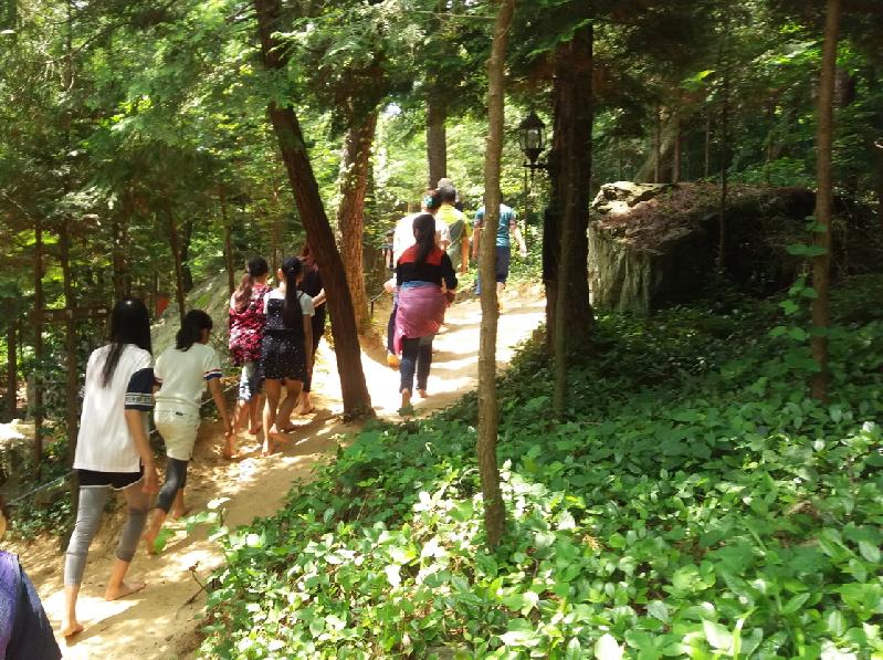 전문 숲 해설가의 안내로 진행된 이번 체험교실은 편백 숲 맨발 체험 및 삼림욕, 피톤치드 족욕, 비누만들기 체험 등 아토피 예방 및 치료를 위한 다양한 체험으로 진행되었으며, 또한 음악과 함께하는 숲속에서의 명상을 통해 정서적으로도 힐링 되는 시간을 가질 수 있었다.