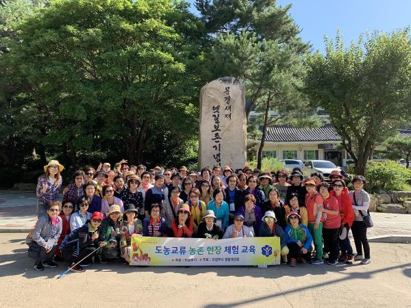 의정부시 도시농업기술과는 지난 18일 도시주부들의 농업에 대한 이해증진과 농산물 수확체험을 통한 도농교류를 위하여 주부 80여명이 참석한 가운데 경상북도 문경시에서 농사체험 교육을 실시했다.