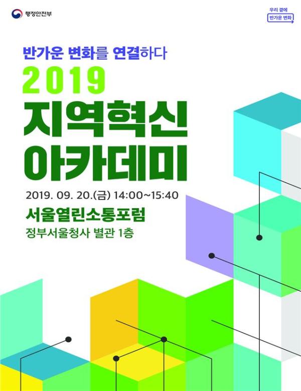 행정안전부는 혁신 과제를 성공적으로 추진하기 위하여 유사한 업무를 추진하는 지자체 공무원, 전문가 등이 모여 같은 주제로 논의·공유하는 장인 ‘2019 지역혁신 아카데미’를 오는 20일 열린소통포럼에서 개최한다. 이번 행사는 실패박람회와 연계하여 진행하며 지역 청년 일자리를 주제로 진행한다.