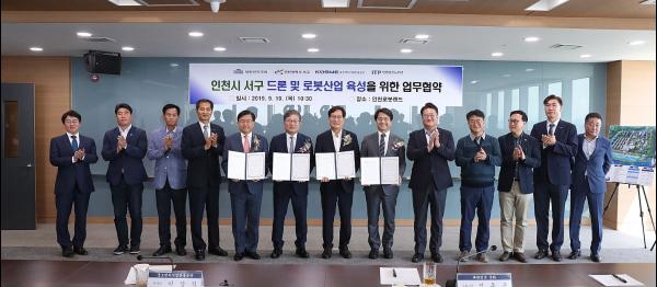 인천 서구는 중소벤처기업진흥공단, 국회의원 신동근, 인천테크노파크와 인천 로봇랜드 내 로봇타워 회의실에서 ‘인천서구 드론 및 로봇산업 육성을 위한 업무협약’을 19일 체결했다고 밝혔다.