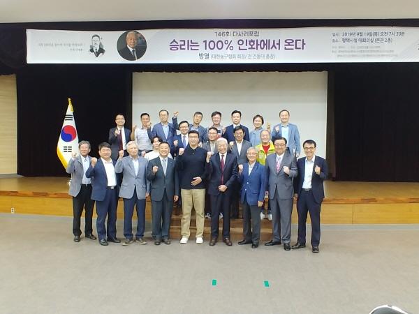 독립운동가 민세 안재홍 선생의 평생학습 실천 활동을 계승하기 위한 조찬 9월 중 다사리포럼이 19일 방열 대한농구협회 회장을 초청하여 평택시청 대회의실에서 개최됐다.