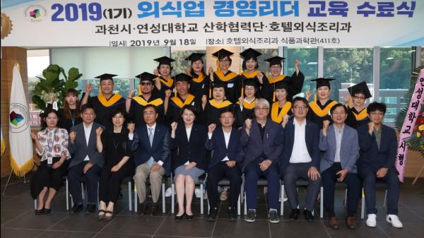 9월 18일 연성대학교에서 과천시 외식업 경영인 수료생 18명, 1기 수료식 가져