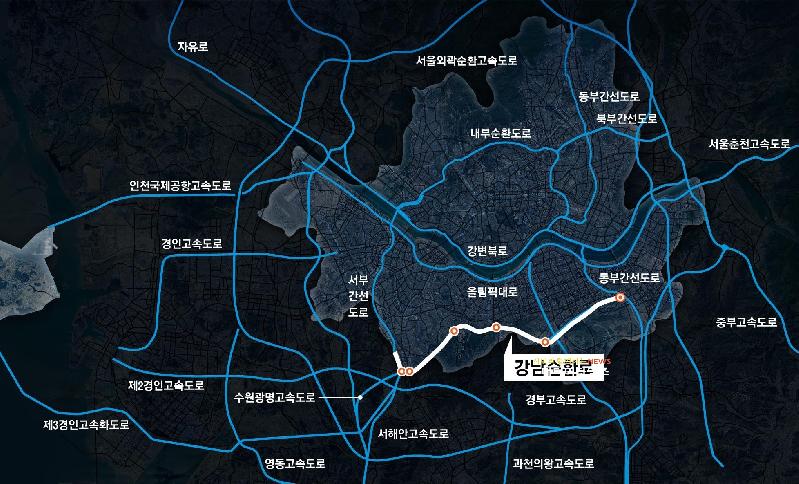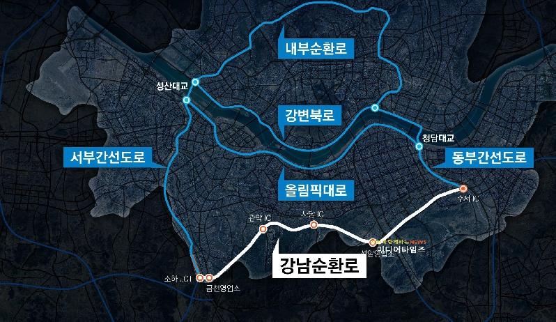 '강남순환로'는 금천구 독산동과 강남구 수서동을 연결하는 총연장 22.9km의 순환형 도시고속화도로다. 서울시가 남부순환로의 상습적인 교통정체를 완화하고 부족한 서울 남부지역 동서간 도로인프라를 확충하기 위해 지난 '07년 착공했다.