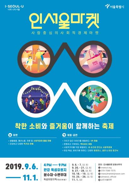 ‘인서울마켓’은 사회적가치를 실현하고 있는 500여개의 사회적경제기업과 소셜벤처가 참여하는 사회적경제장터로 사회적가치가 담긴 다양한 상품과 건강한 먹거리 판매부터 시민누구나 참여할 수 있는 체험과 공연이 펼쳐지는 축제다. 서울시는 이 ‘인서울마켓’을 서울을 대표하는 사회적경제 공유의 장으로 발전시킬 계획이다.