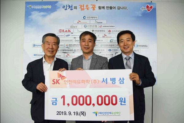 SK인천석유화학 서병삼님은 지난 19일 인천인재육성재단에 장학금 1백만원을 기탁했다.