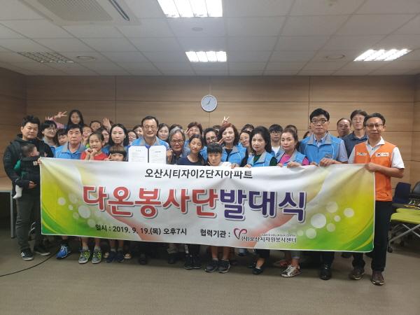 오산시자원봉사센터는 지난 19일 오산시티자이2단지아파트 마을주민으로 이루어진 다온봉사단 발대식을 개최했다.