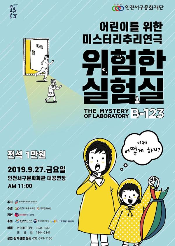 인천서구문화재단은 오는 27일 서구문화회관 대공연장에서 제27회 서울어린이연극상에서 최고 인기상을 포함 2관왕의 영예를 거머쥔 창작아동극 ‘위험한 실험실 B-123’을 선보인다.