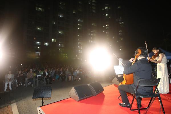 먼저 바이올린과 첼로의 현악2중주로 헨델/할베르센의 파사칼리아의 연주로 공연을 시작했으며, 이어 바이올린과 피아노의 이중주로‘사랑의 슬픔’, 김정아 소프라노와 팝페라 가수 오윤석의 멋진 화음으로 뮤지컬 이순신의 수록곡인 ‘나를 태워라’,알라딘 영화의 ‘A whole new world’공연이 펼쳐지며 공연을 찾은 주민들에게 깊은 추억과 감동을 선사했다.