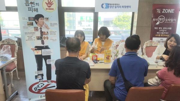 평택보건소는 지난 19일 평택상공회의소 중장년 채용박람회에서 금연의 필요성과 흡연의 위험성을 알리는 금연 캠페인을 실시했다.