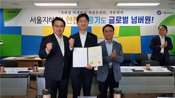 서울특별시의회 교통위원회 추승우 의원은 지난 19일 서울시 서소문별관 1동 교통정책과 회의실에서 열린 ‘지하철 미세먼지 저감 추진단’ 제2차 자문회의에 참석하여 위촉장을 수여 받았다.