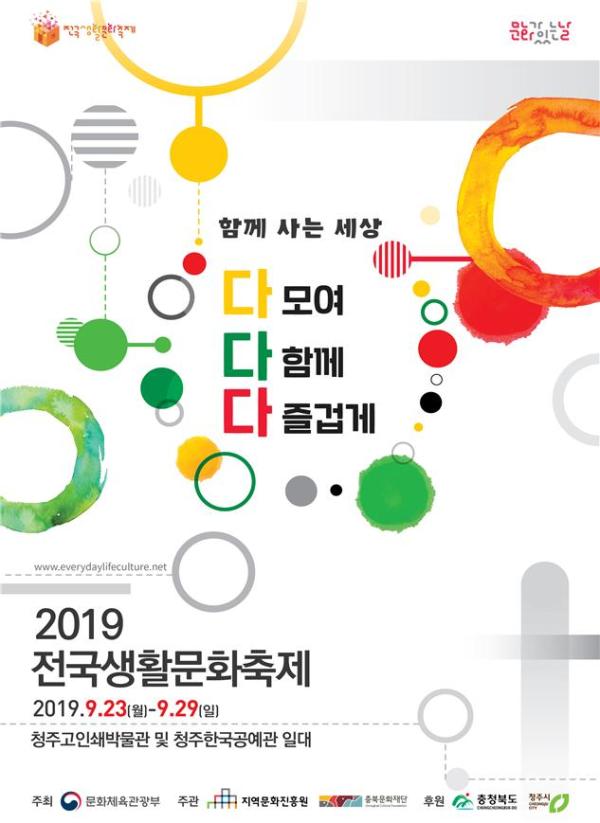 문화체육관광부가 주최하고 지역문화진흥원과 충북문화재단이 공동으로 주관하는 ‘2019 전국생활문화축제’가 23일부터 오는 29일까지 충북 청주고인쇄박물관과 청주한국공예관 일대에서 열린다.