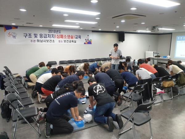하남시보건소는 평일 교육을 받을 수 없는 직장인을 대상으로 주말을 이용하여 응급처치교육을 실시하고 있다고 밝혔다.
