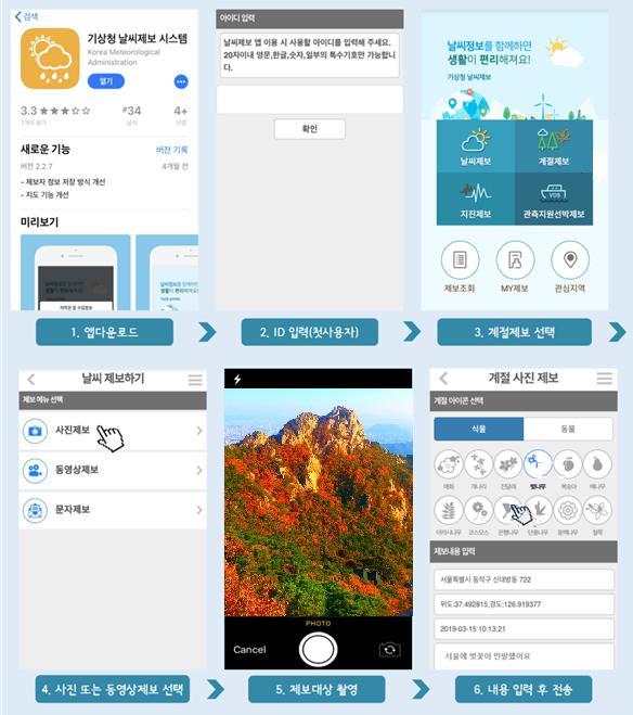 ‘날씨제보 앱’은 국민의 제보로 관측 공백을 최소화하고 돌발 기상현상을 포착하기 위해 2014년 개발되어 운영하고 있는 국민참여형 앱이다.