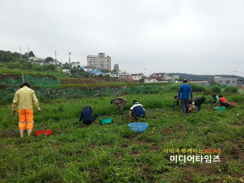 [미디어타임즈 = 최귀복 기자] 거제시 사등면 주민자치위원회(위원장 이용훈)는 지난 21일, 금포마을 내 텃밭에서 특화사업의 일환으로 심은 사랑의 감자를 수확했다.