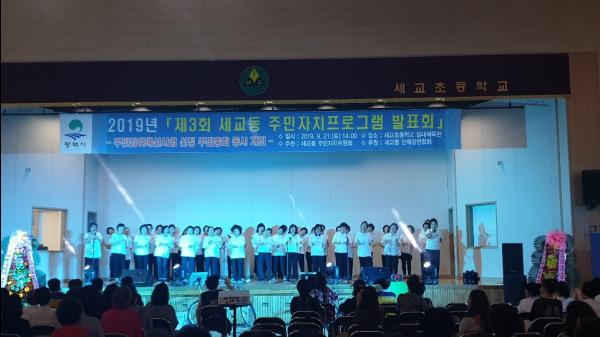 평택시 세교동주민자치위원회는 주민자치프로그램 수강생과 관내 주민 등 300여 명이 참석한 가운데 ‘2019년 제3회 세교동주민자치프로그램 발표회’를 개최했다.