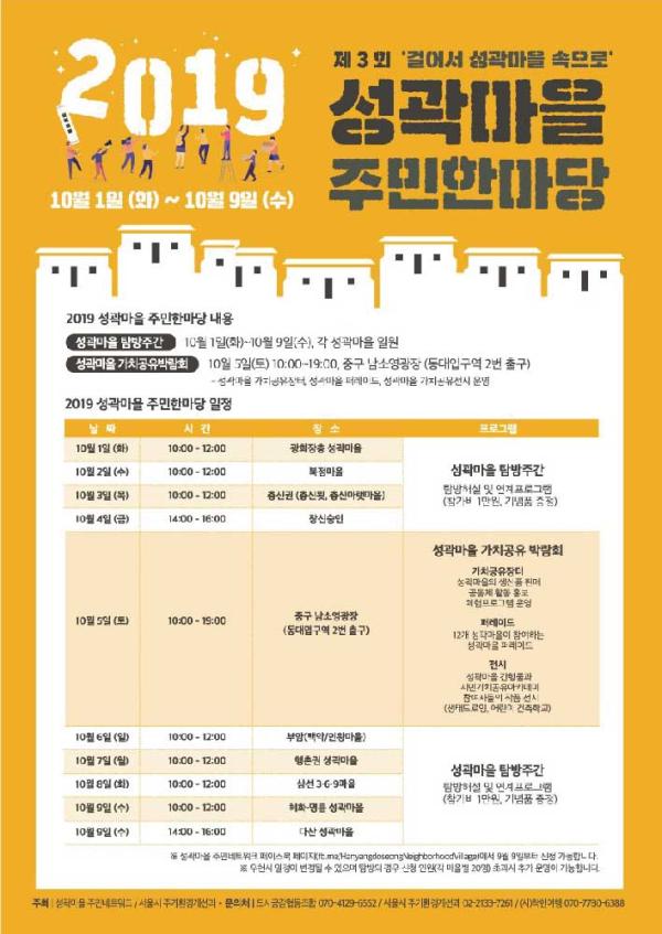 10월 1일부터 9일, 한양도성 주변 성곽마을 ‘2019 성곽마을 주민한마당’ 축제 개최