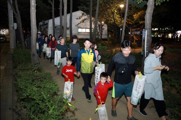 20일 거리공원서 가족, 친지, 이웃과 밤길 걸으며 희망메시지 나눠