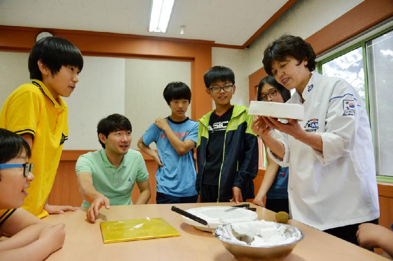 이 날 김혜금 기능장이 사전에 준비해 온 케익빵과 크림, 토핑재료를 가지고 직접 케익을 만들어보는 활동을 모둠별로 진행하여 학생들에게 더 큰 호응을 얻었다. 학생들은 “제빵이라고 하는 직업에 대해 평소에 관심이 많았는데 생각보다 배워야 할 기술이 다양하고 어려운 과정을 거쳐야 한다는 것에 대해 놀랐다. 하지만 강사님이 말씀하신 것처럼 끊임없는 노력으로 내 꿈을 이루고 싶다.”고 말했다.