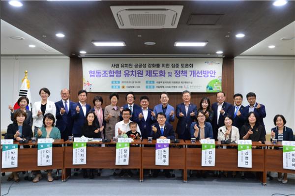 토론의 핵심주제인 협동조합형 유치원은 학부모들의 출자로 사회적협동조합을 결성해 학부모·교직원·지역사회가 함께 유치원을 설립·운영하는 모델이다. 지난해 사립유치원 비리의혹이 불거진 후 교육부가 발표한 ‘유치원 공공성 강화 방안’에서 대안 모델로 제시됐다. 올해 3월에는 서울 노원구에 전국 최초 협동조합형 유치원인 꿈동산 아이 유치원이 개원을 했다.