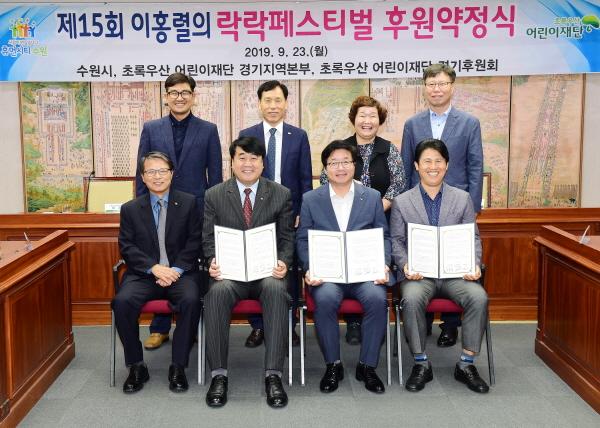수원시와 초록우산어린이재단 경기후원회, 초록우산어린이재단 경기지역본부는 23일 시청 상황실에서 ‘제15회 이홍렬의 락락페스티벌 후원 약정식’을 열고, 협력을 약속했다.