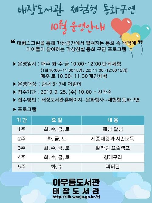 수강료는 무료이며, 태장도서관 홈페이지에서 9월 25일 오전 10시부터 선착순으로 접수한다.