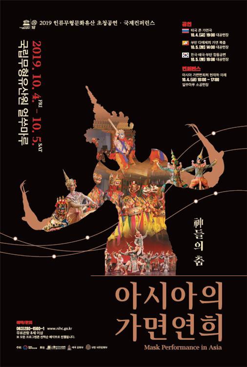 문화재청 국립무형유산원은 오는 10월 4일부터 5일까지 이틀간 태국·부탄의 전통 가면연희 종목을 초청하여 공연과 컨퍼런스 등을 선보이는 ‘신神들의 춤, 아시아의 가면연희’ 축제를 개최한다.