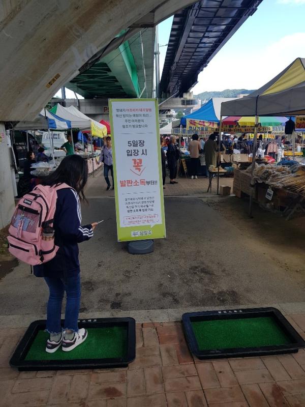 특히, 관내 5일장 중에 유동인구가 제일 많은 마석5일장은 출입구 내·외부에 소독 발판 설치를 완료하여 주기적으로 소독을 실시할 예정이다.