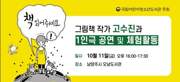오는 10월 11일 고수진 작가의 ‘산딸기 임금님’ 1인 공연 등 개최