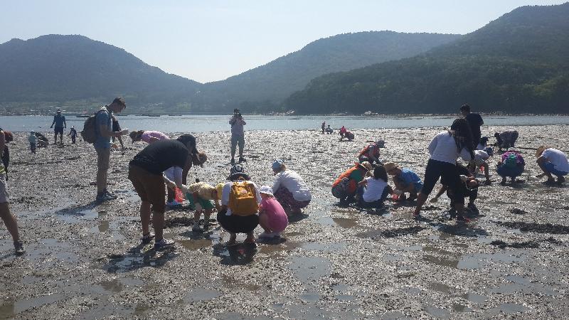 체험행사가 가미된 이번 팸투어의 하이라이트는 다대 어촌체험마을에서의 조개캐기 체험이었다. 누가 먼저랄 것도 없이 갯벌로 들어가 바지락과 맛조개를 캐기 시작했으며, 주어진 한 시간이 모자랄 정도로 체험을 즐기며 거제에서의 추억을 쌓았다.