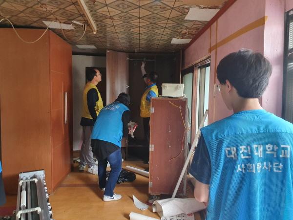 포천시 선단동행정복지센터 맞춤형복지팀은 지난 20일 대진대학교 사회봉사단과 누리가구와 함께 주거환경이 열악한 가구를 대상으로 주거환경개선사업을 실시했다.