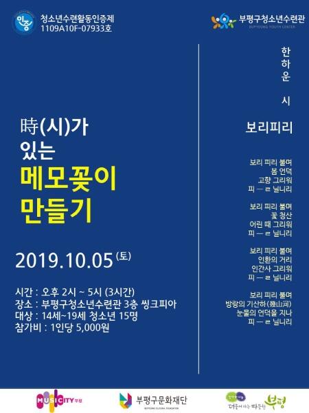 부평구 청소년수련관은 청소년수련활동 인증제 ‘時가 있는 메모꽂이 만들기’에 참가 할 지역의 14~19세 청소년 15명을 모집한다.