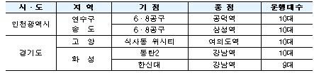 운송사업자 선정은 9월 말 대도시권광역교통위원회 홈페이지를 통해 모집 공고를 실시한 이후, 입찰에 참여한 업체를 대상으로 ‘광역급행형 시내버스 사업자 선정 평가단’에서 해당 노선에 적합한 운송사업자를 평가·선정할 계획이다.